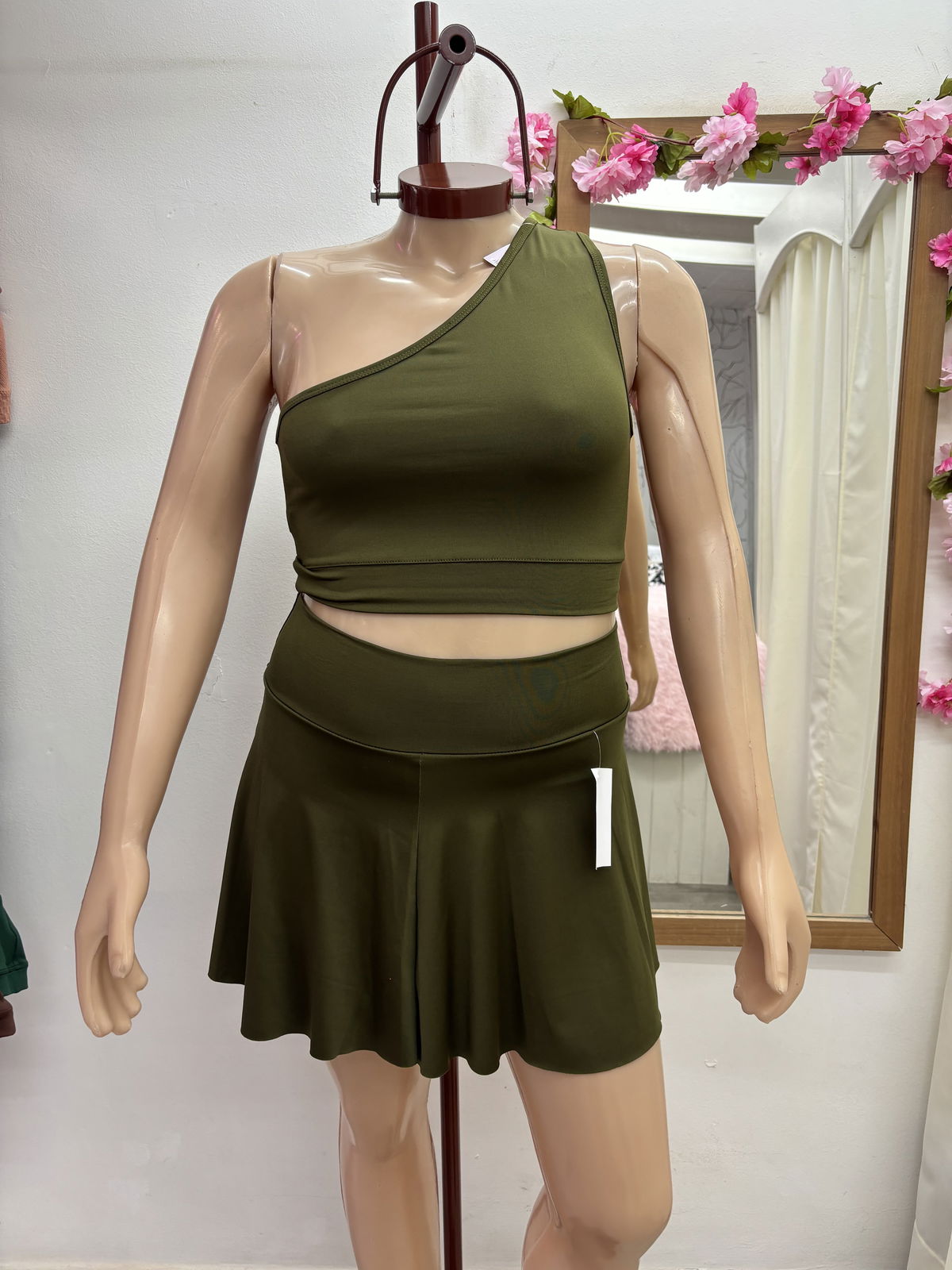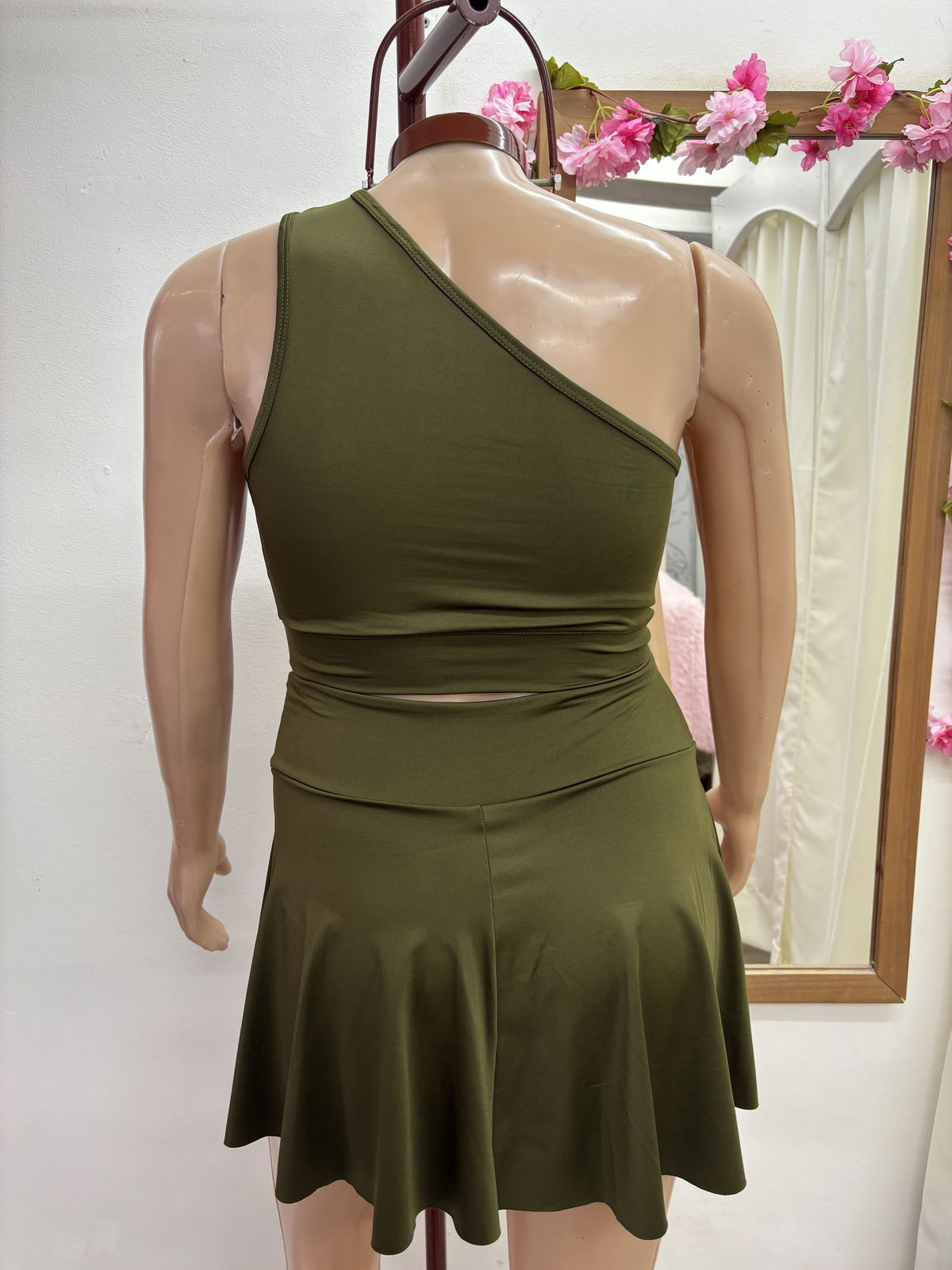 Short pollera con volados | verde militar