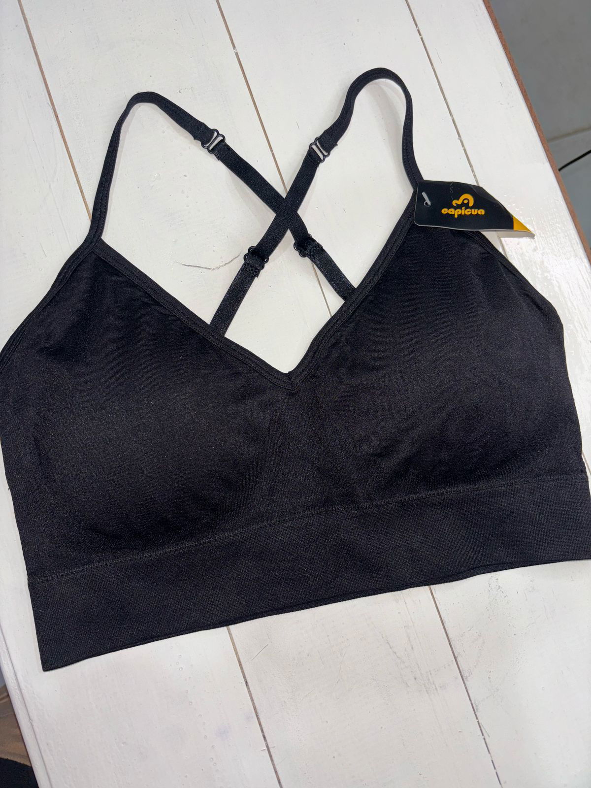Top CAPICUA negro clásico - talle 2 breteles cruzado