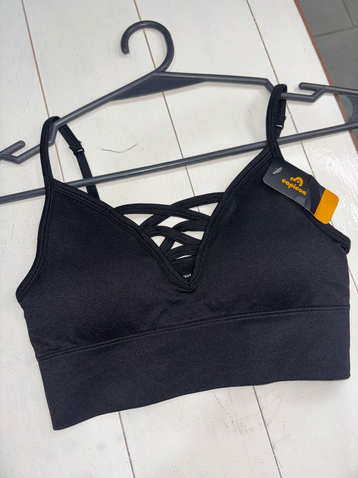 Top CAPICUA negro clásico - talle S breteles cruzado