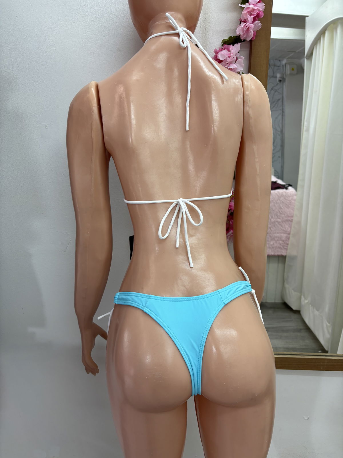 Bikini triangulito con tazas removibles + colaless | Celeste