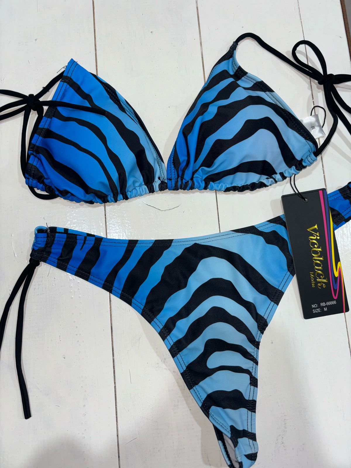 Bikini triangulito con tazas removibles - Zebra azul talle M