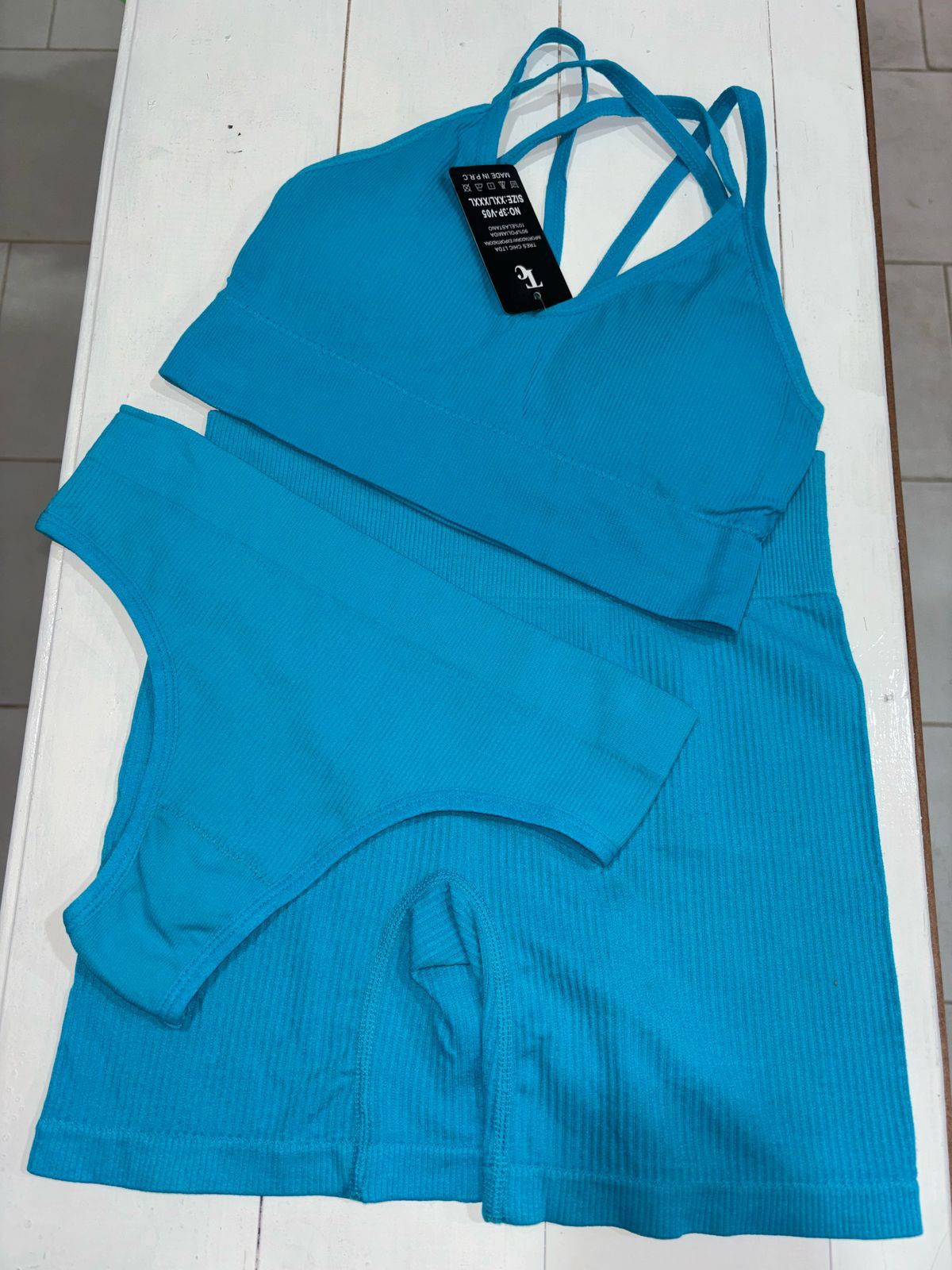 Conjunto 3 piezas: top + short levanta cola + colaless - talle unico (abarca 36 a 46)