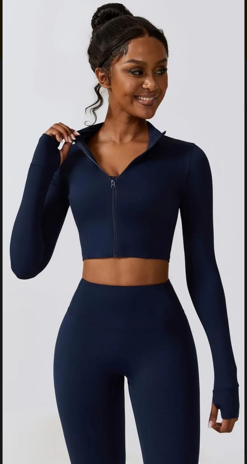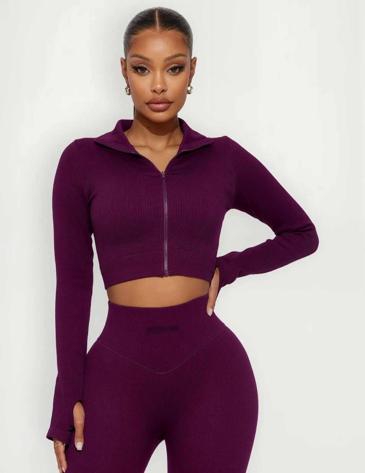 La campera crop con dedal le da un toque atlético y canchero, perfecta para entrenar o lucir un look urbano con actitud 🖤