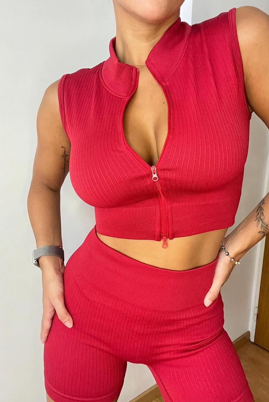 El top con cierre frontal le da ese toque sexy + funcional, mientras que el short con frunce realza las curvas de forma natural y cómoda 🖤