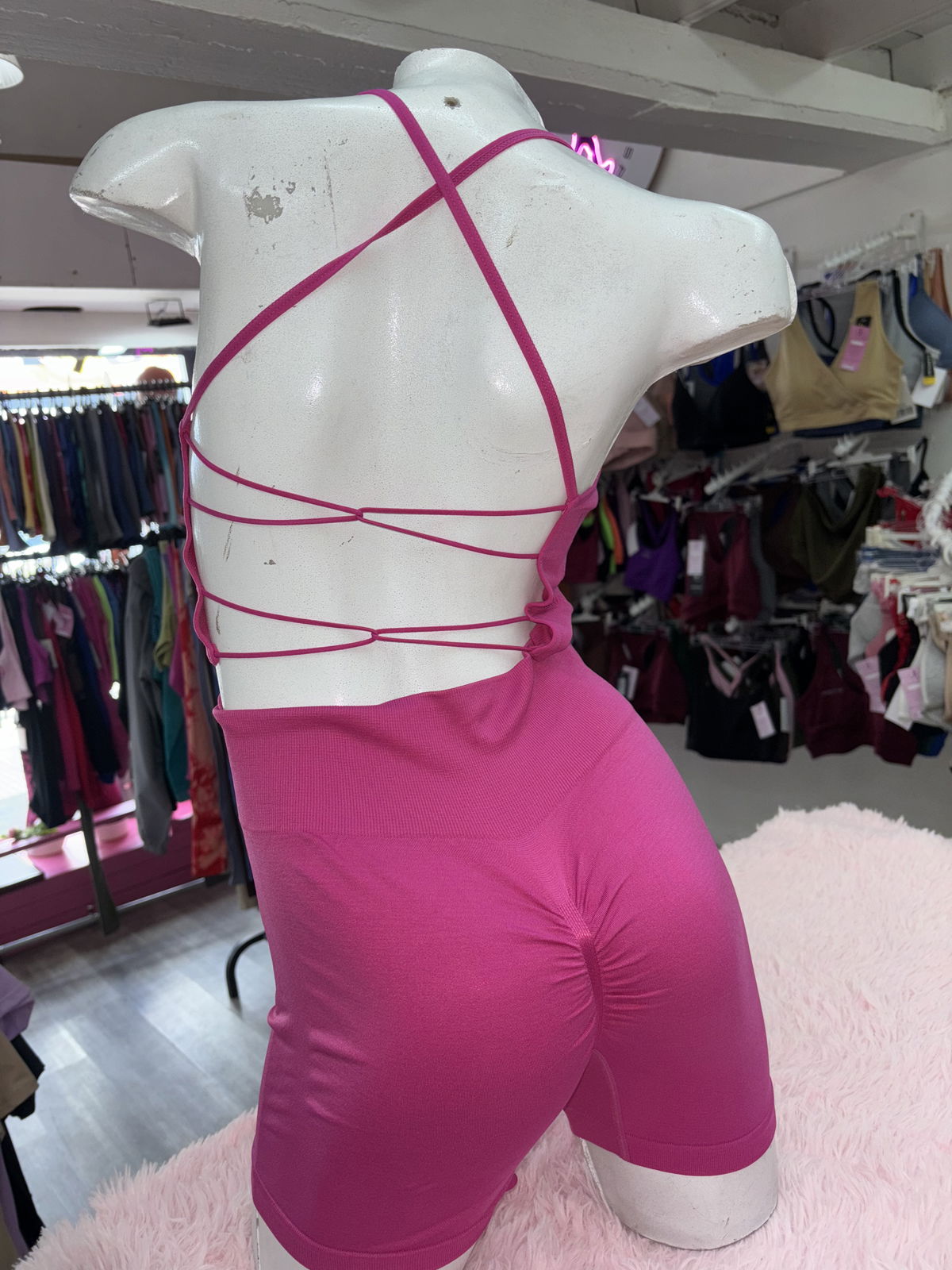 Conjunto crop top espalda cruzada + short con frunce | rosa 🌸