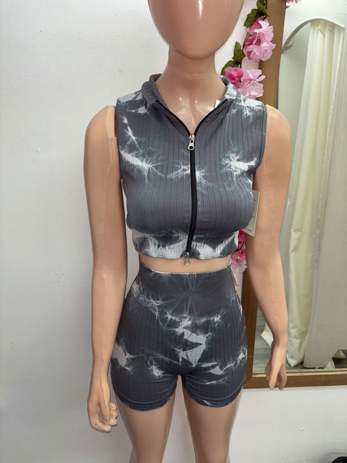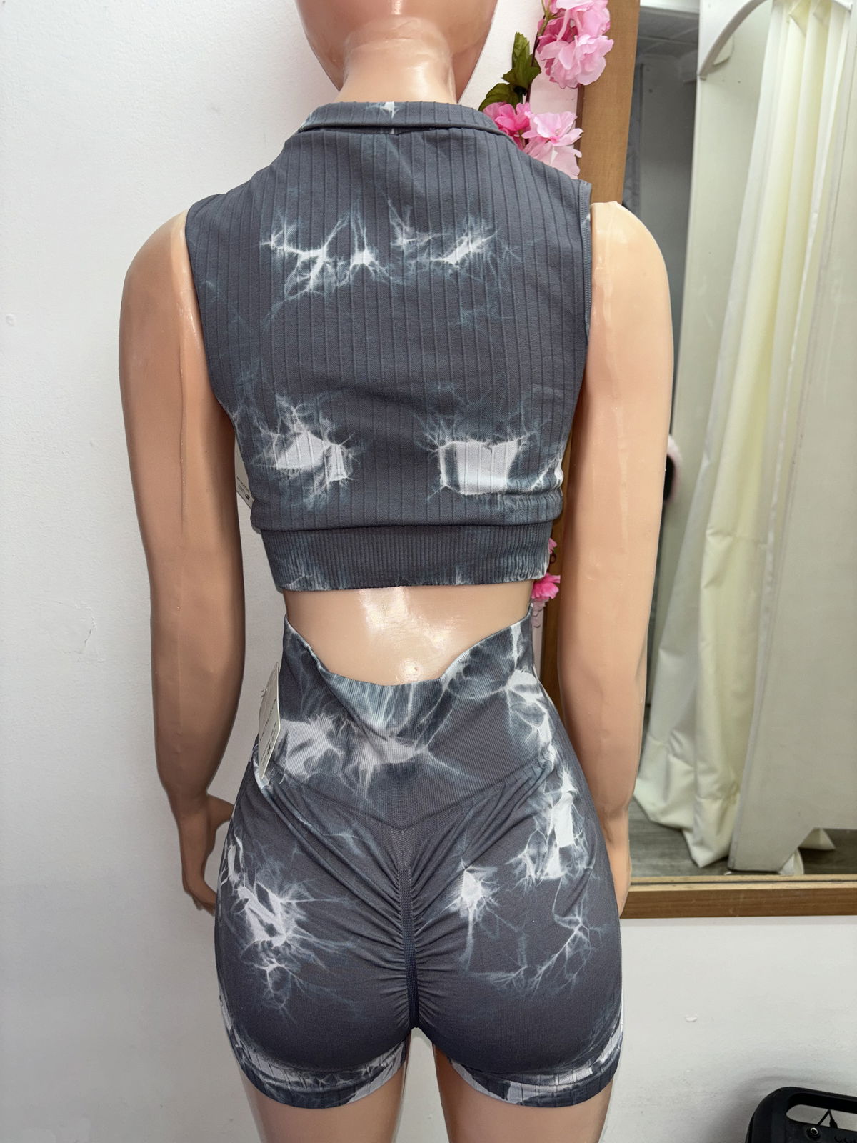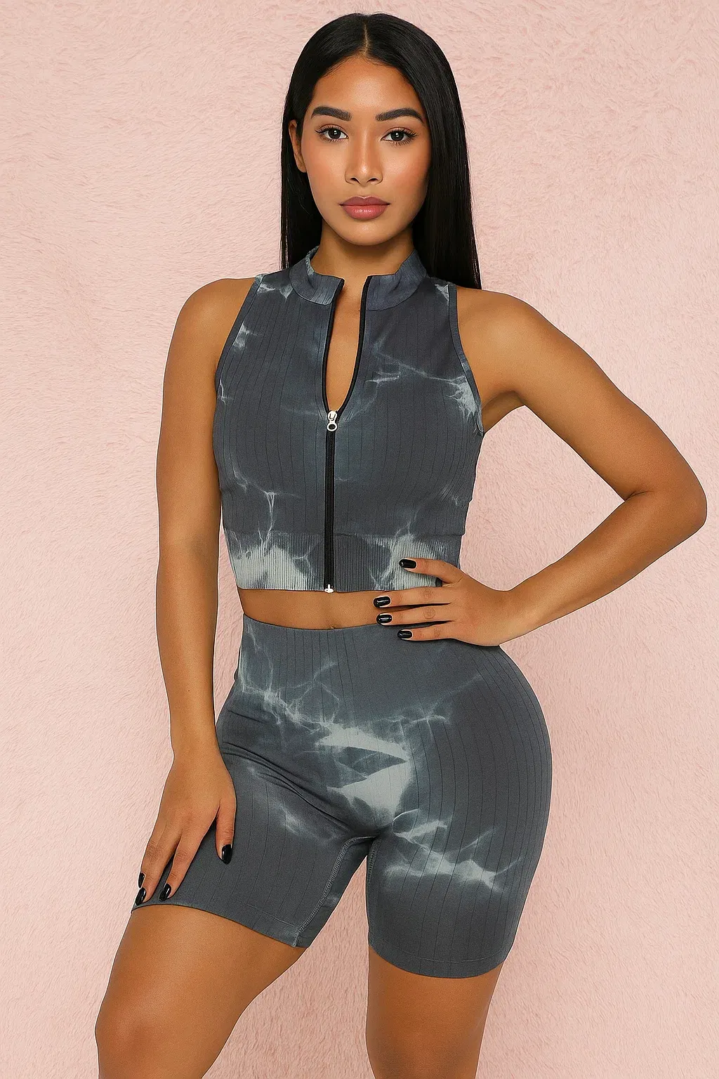 Estilo, comodidad y un toque 🔥 en un mismo outfit. Este set importado de calidad premium combina un crop top sin mangas con doble cierre delantero (arriba y abajo) para que lo uses como quieras, y un short elastizado con frunce trasero que realza la cola 🍑 y se adapta perfecto a tu cuerpo.