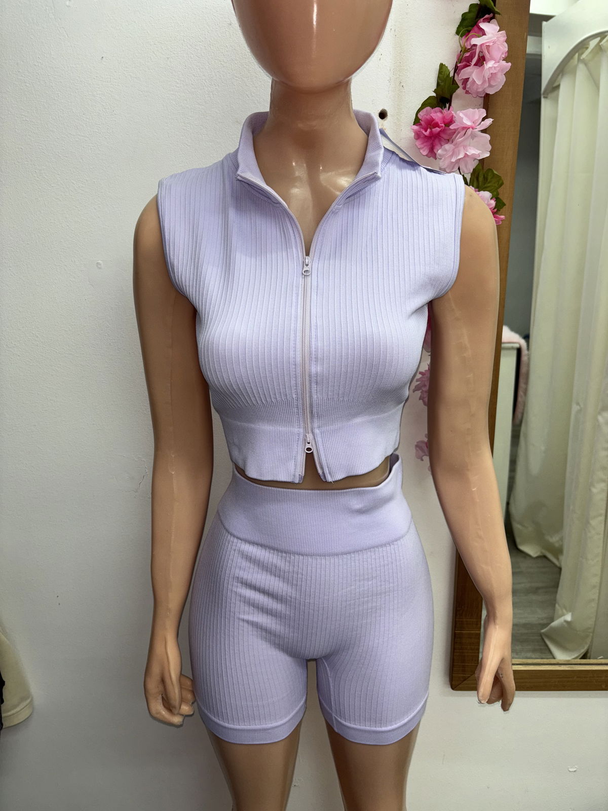 Estilo, comodidad y un toque 🔥 en un mismo outfit. Este set importado de calidad premium combina un crop top sin mangas con doble cierre delantero (arriba y abajo) para que lo uses como quieras, y un short elastizado con frunce trasero que realza la cola 🍑 y se adapta perfecto a tu cuerpo.