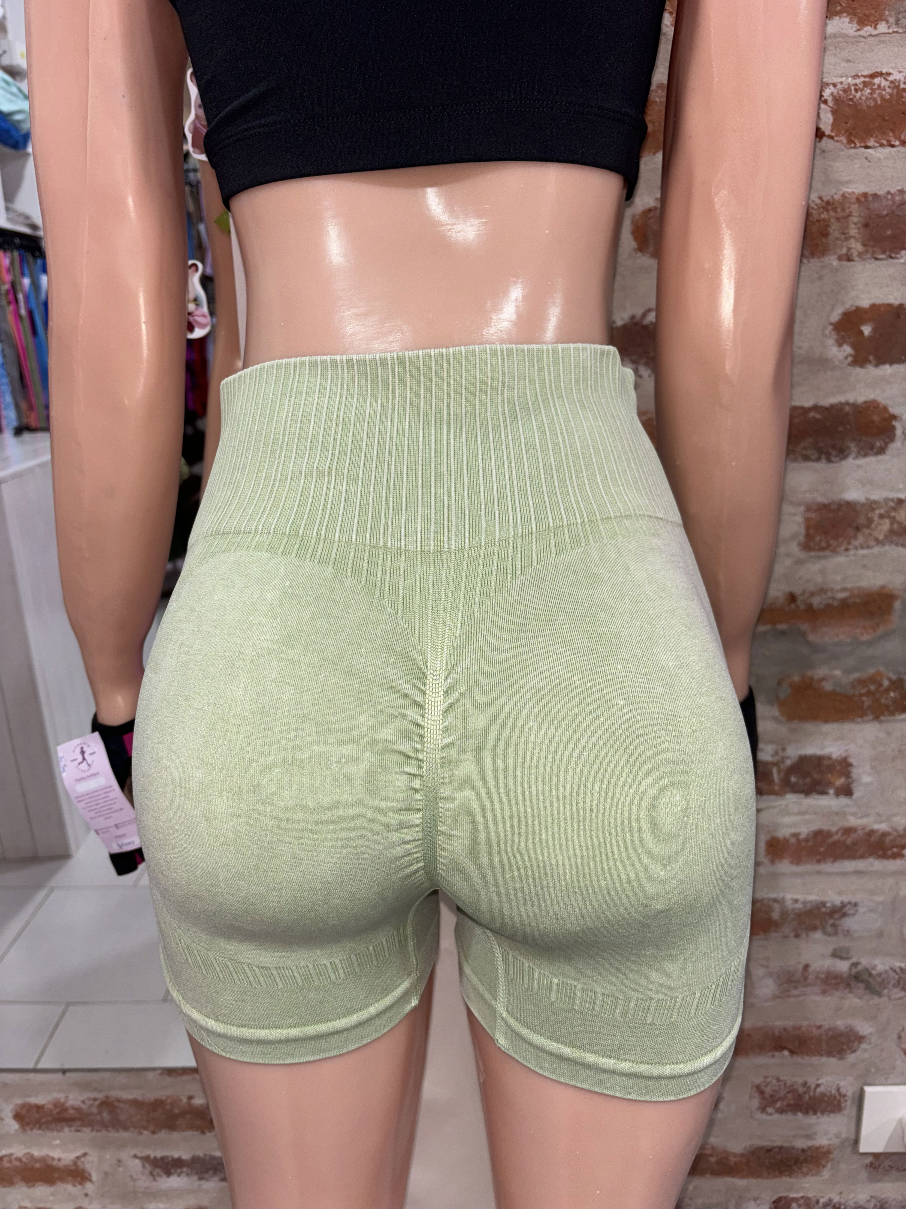 🍑 Short con Frunce – verde clarito prelavado | DLIRIO Importado Premium 🌟