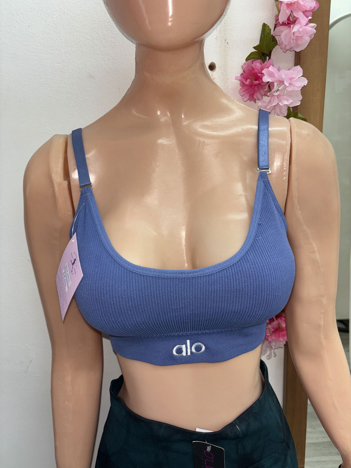 El Top ALO llegó para bancarte en todas 💥. Tiene breteles regulables con hebillas metálicas que te aseguran la sujeción, tazas desmontables para que elijas cómo te queda, y un tejido elastizado súper resistente que se adapta a vos sin perder forma.