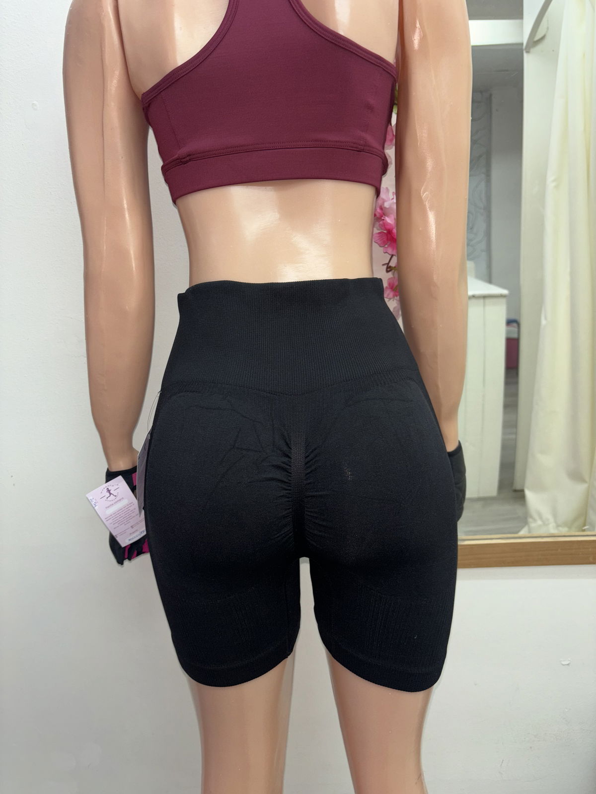 Nuestro short negro clásico es perfecto para entrenar con confianza y verte increíble. El frunce trasero 🍑 realza tu figura, mientras que la cintura compresora y el tiro alto te brindan firmeza y soporte en cada movimiento.