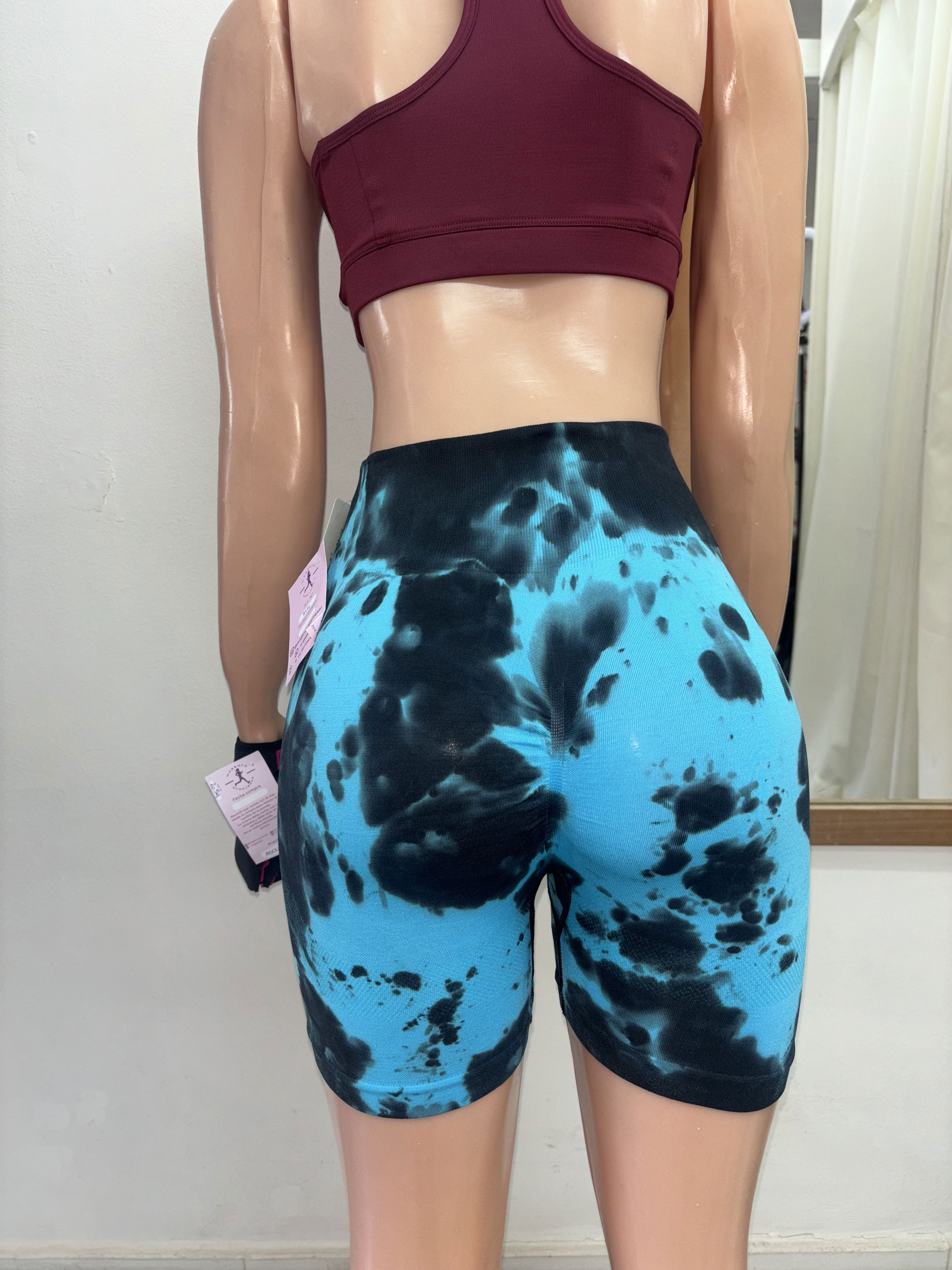 💥 Short con Frunce en la Cola – Diseño salpicado | celeste con negro