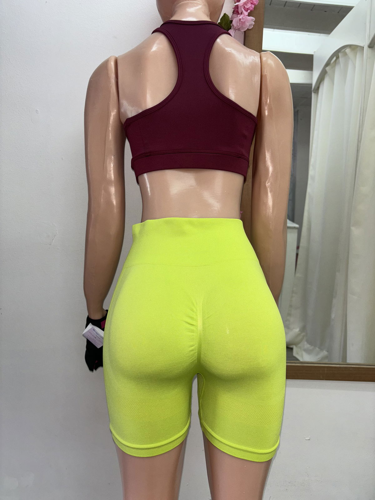 Nuestro short liso es perfecto para entrenar con confianza y verte increíble. El frunce trasero 🍑 realza tu figura, mientras que la cintura compresora y el tiro alto te brindan firmeza y soporte en cada movimiento.