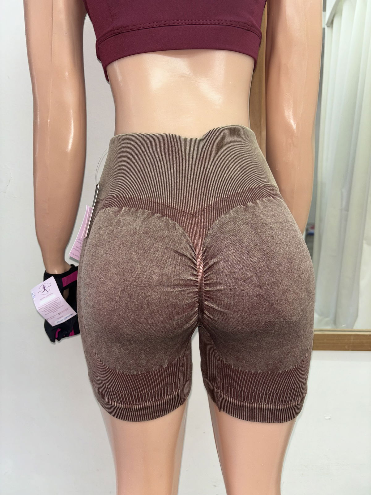 Nuestro short negro prelavado es perfecto para entrenar con confianza y verte increíble. El frunce trasero 🍑 realza tu figura, mientras que la cintura compresora y el tiro alto te brindan firmeza y soporte en cada movimiento.