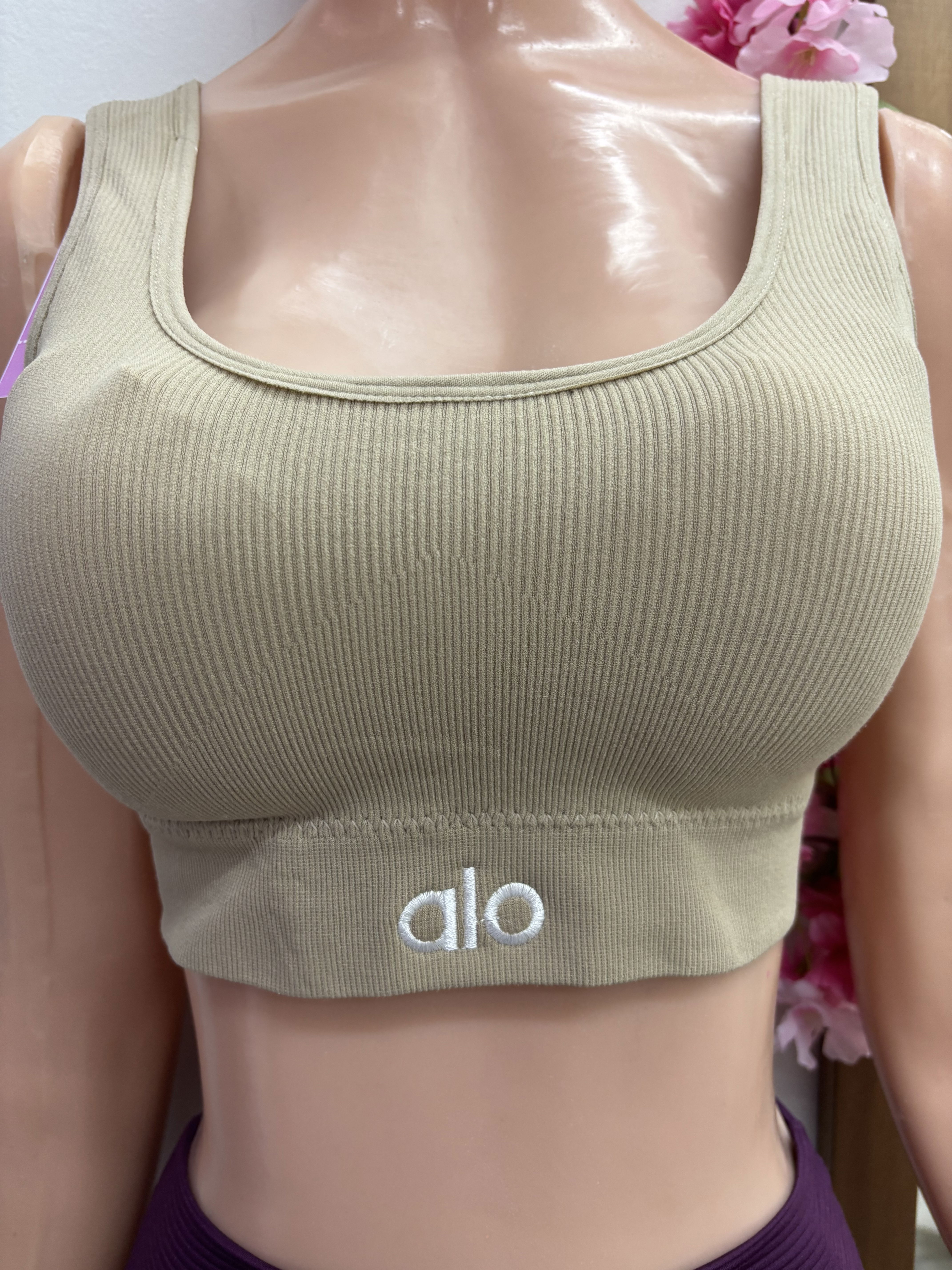 El Top ALO llegó para bancarte en todas 💥. Tiene breteles anchos que te abrazan con firmeza, tazas desmontables para que elijas cómo te queda, y un tejido elastizado súper resistente que se adapta a vos sin perder forma.