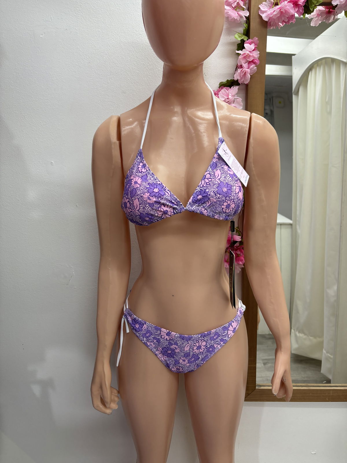 Bikini triangulito con tazas removibles + colaless - floreado | violeta