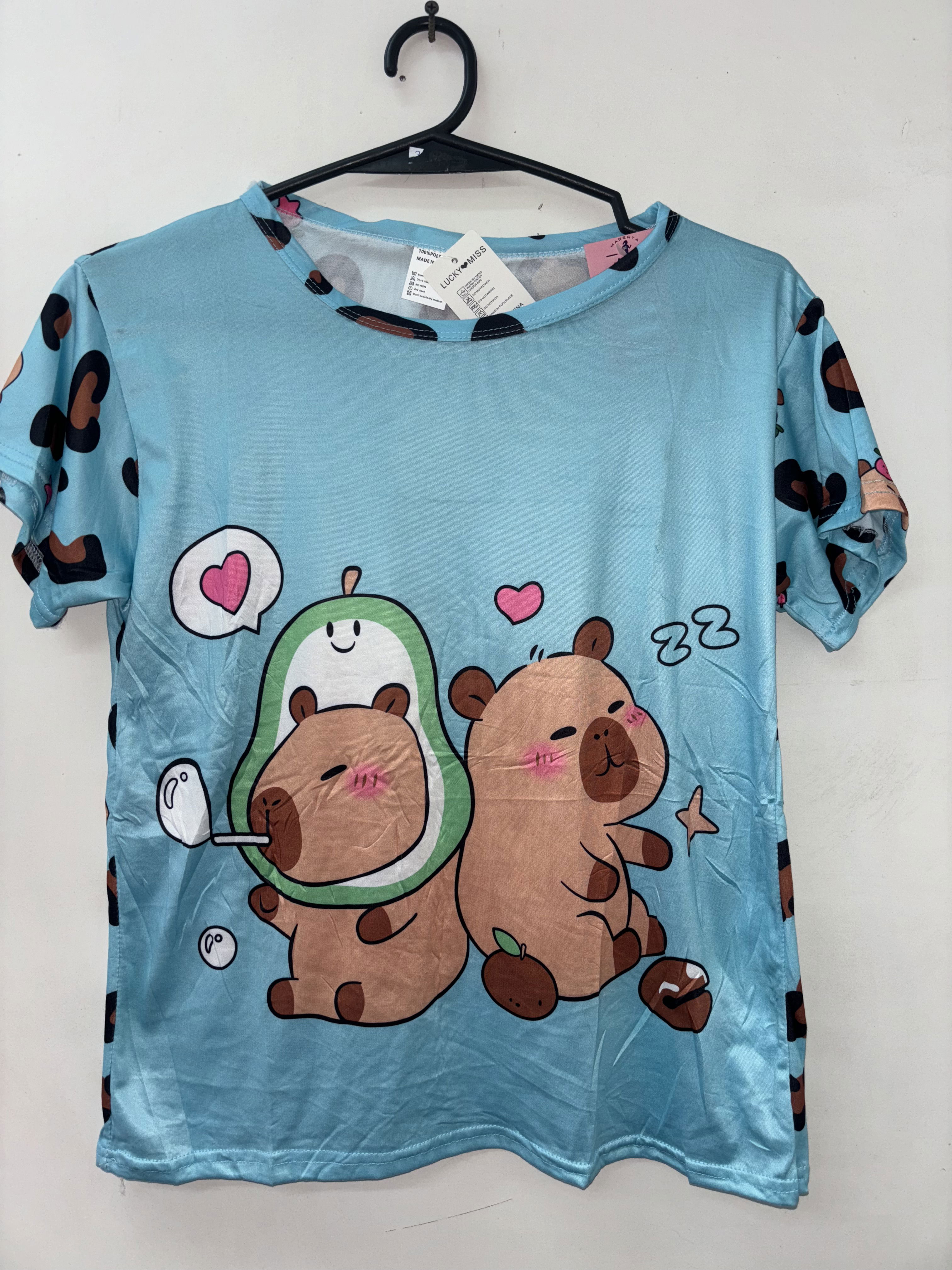 Pijama 3 piezas de niña👧: Remera + short suelto + pantalón liviano | Capibara talle 14