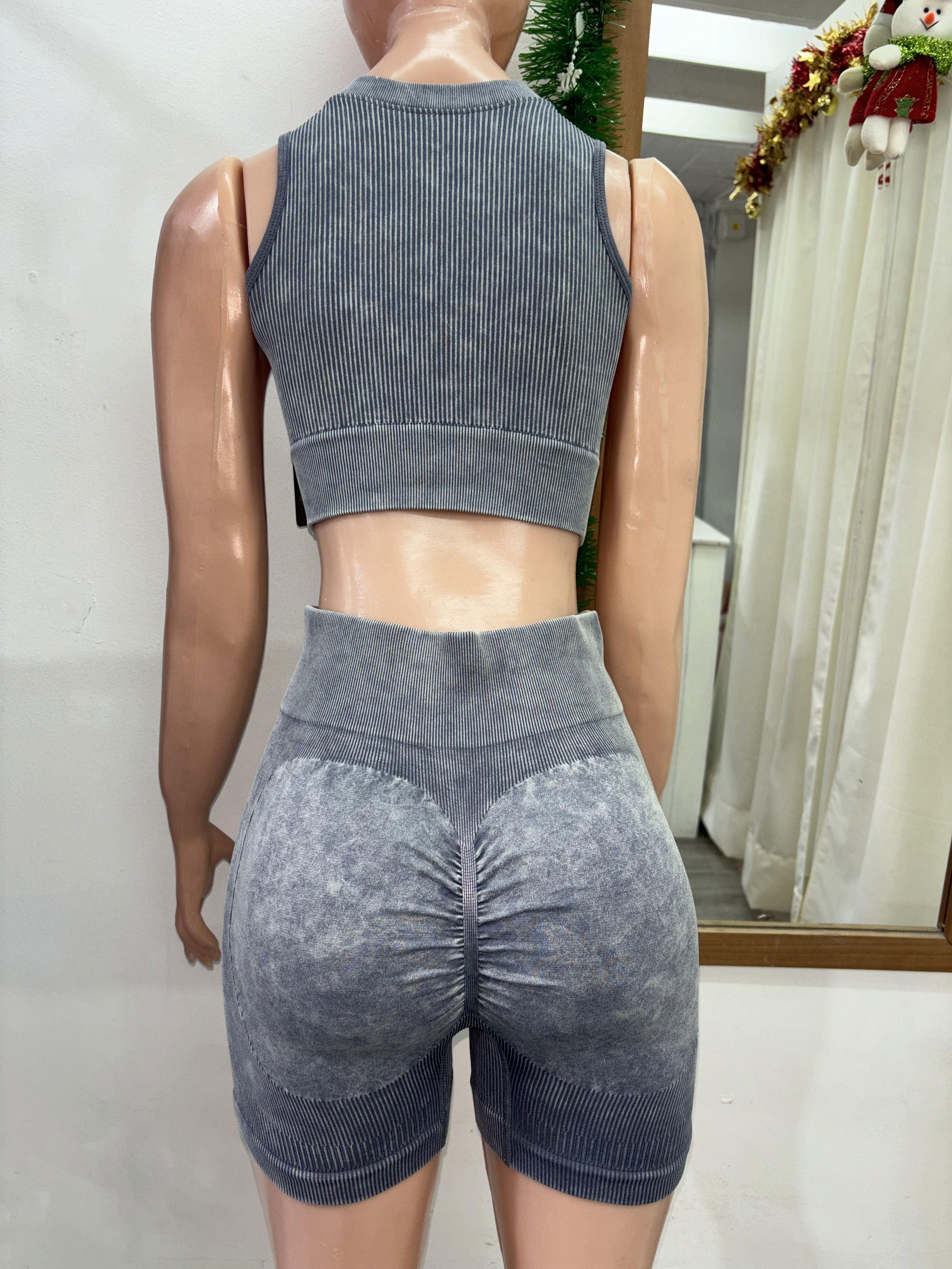 Conjunto crop top gotita con cierre + short con frunce | gris topo