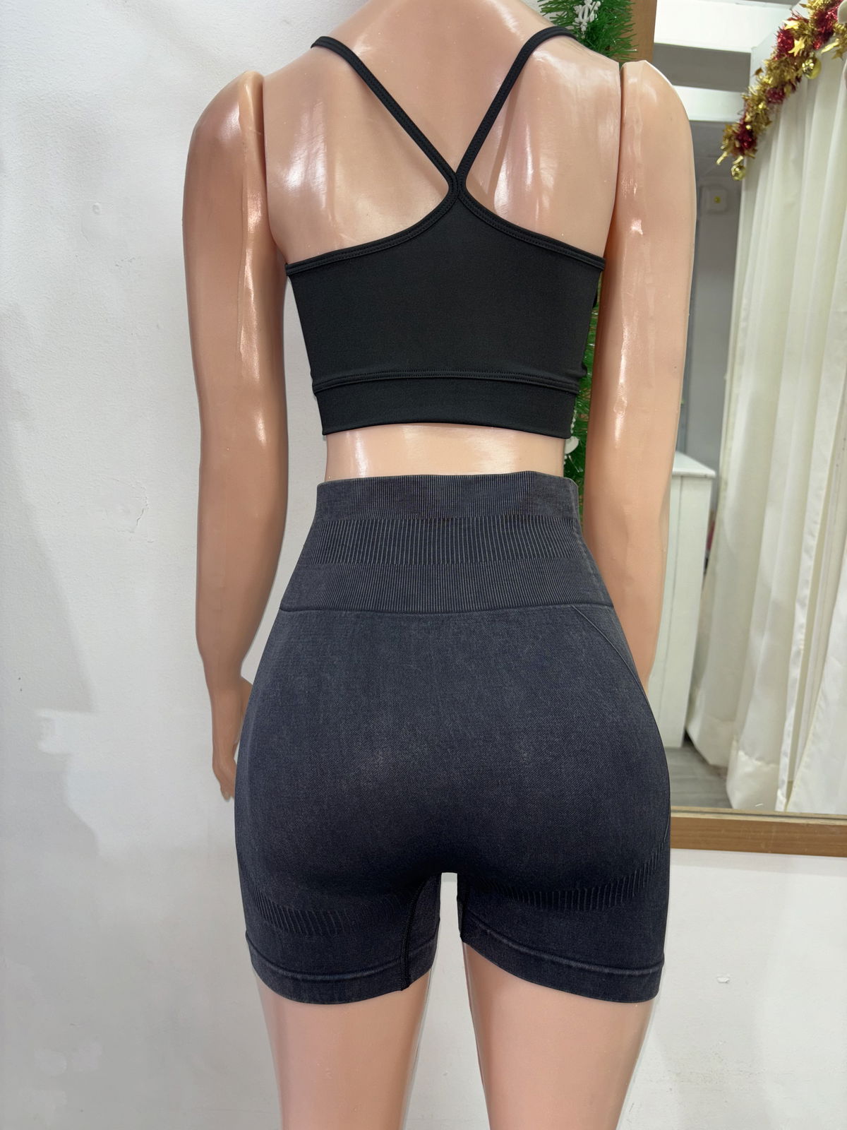 Nuestro short negro prelavado es perfecto para entrenar con confianza y verte increÃble. SIN frunce trasero para mayor comodidad), mientras que la cintura compresora y el tiro alto te brindan firmeza y soporte en cada movimiento.
