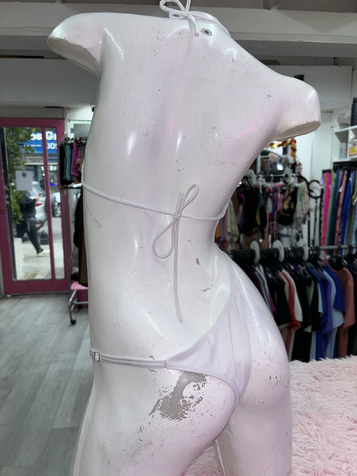 Bikini triangulitos con tazas removibles corazón strass + colaless| blanco 🤍